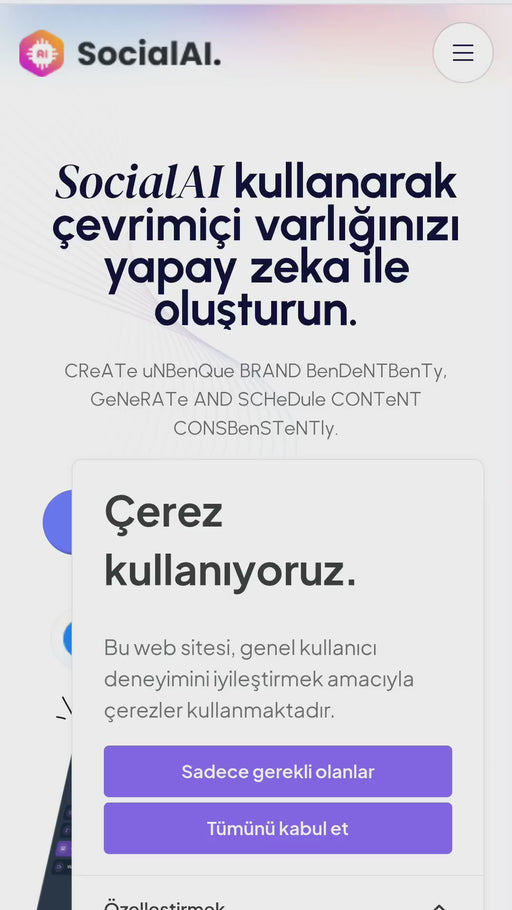 Original price 36,191.00TL - Original price 36,191.00TLOriginal price36,191.00TL36,191.00TL - 36,191.00TLCurrent price 36,191.00TLSocialVibe - Yapay Zeka Destekli Sosyal Medya Yönetimi ve Planlama SaaS'ı